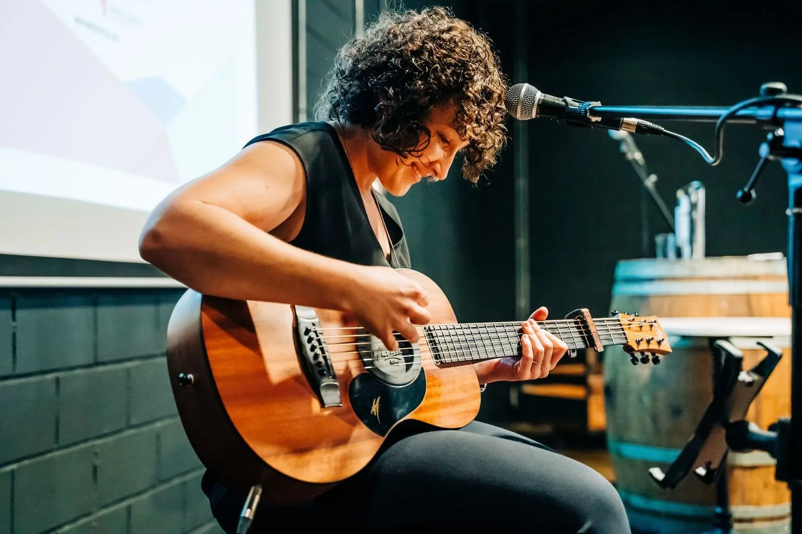 Don’t let Nyssa Ray’s petite stature and playful ringlets fool you—her voice carries a powerful presence you won’t want to miss. Known as a true “One Woman Band,” Nyssa layers dreamy vocals, acoustic guitar, and groovy percussion live on the spot, creating the sound and energy of a full ensemble.